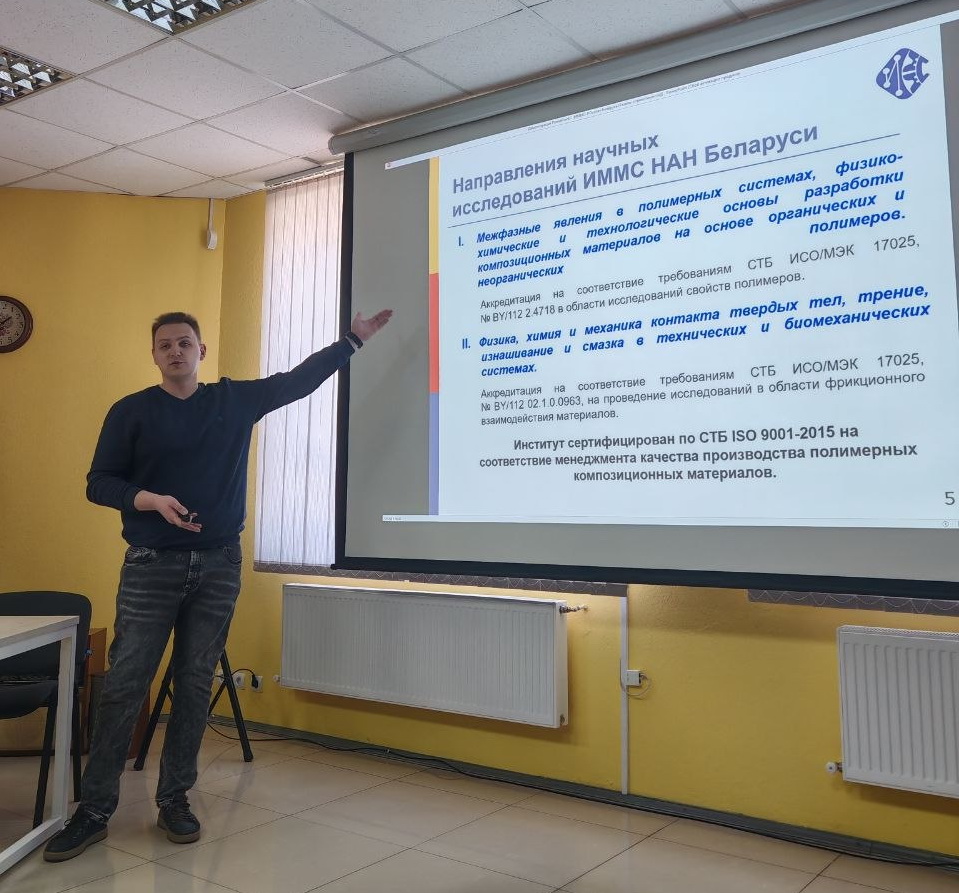В мероприятии от ИММС НАН Беларуси приняли участие – заведующий лабораторией 2.1. Шилько Сергей Викторович, представители Совета молодых ученых – Брундуков Алексей и Ковалева Ярослава. Научный сотрудник отдела «Физика и механика композиционных систем» Алексей Брундуков представил доклад, в котором ознакомил участников диалоговой площадки с деятельностью института, рассказал о тесном сотрудничестве с российскими коллегами-учеными, участии в совместных проектах и конкурсах академий наук наших стран. Отдельный акцент был сделан на связи поколений и исторической памяти.